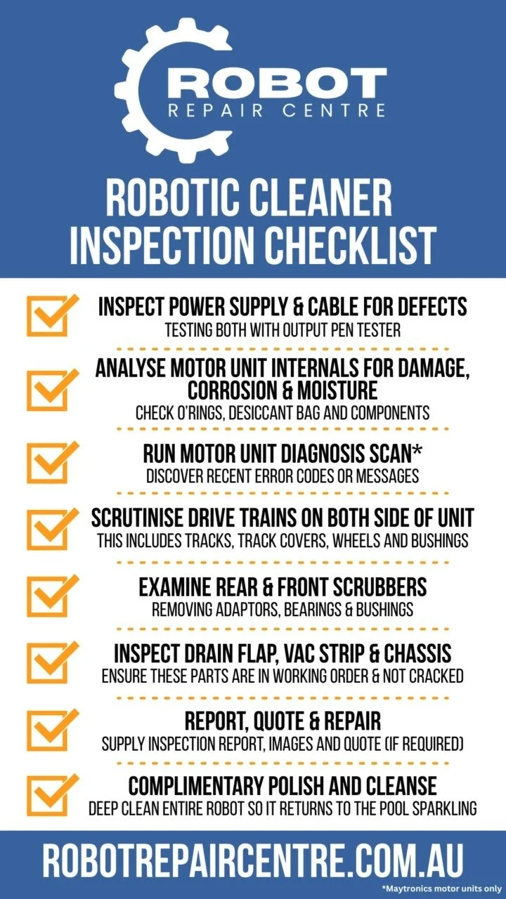 At Robot Repair Centre, we take pride in being an independently owned and operated service provider specialising in the inspection, reporting, servicing and repairing of swimming pool robotic cleaners and other robotic products. As a small, family owned and operated business, we prioritize traditional customer service and open communication with our clients.